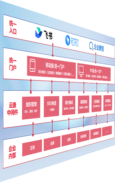 对协作平台提供支持服务,,,支持企业应用与协作平台对接,,,,包含组织同步、、、消息集成、、待办集成等。。。。支持目前主流的协作平台:钉钉、、、、企微和飞书。。。